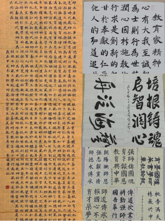 本次比赛分为毛笔字、粉笔字和硬笔字三个项目,书写主题围绕“强师报国”,共有90余名同学报名参赛。经过同学们“硬核”比拼和评委们认真评比,本次比赛共评选出一等奖3名,二等奖7名,三等奖22名。
