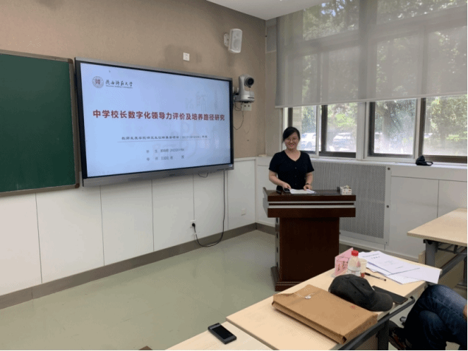 博士生赵婷婷、韦国秀、郭晓君、李莉依序对课题《小学数学跨学科主题学习实践研究》、《指向核心素养的高中数学单元教学研究》、《中学董事长数字化领导力评价及培养路径研究》、《基于“云连接论”的西部中小学基础教育教师专业发展路径探究》进行了开题报告。