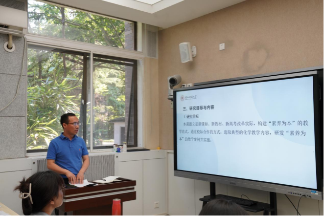 开题报告会上,毛哲茹、张庆和魏玮分别就《“双减”背景下教师负担的消减路径研究》《“素养为本”的高中化学教学设计与实施研究》《教师教育者队伍高质量专业发展路径探究—基于陕西师范类院校二十大视域下的“优师计划”研究》等课题,从研究背景和意义、研究现状、研究目标、研究内容、研究方法、创新点以及预期成果等八个方面进行现场汇报。