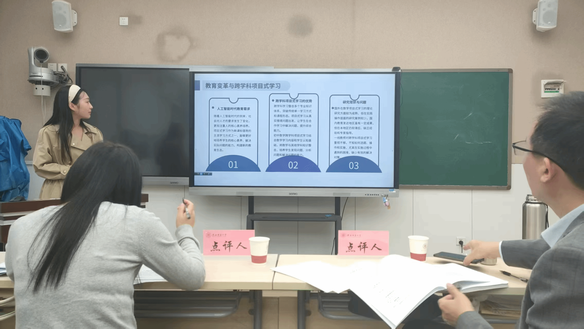 会上,王立儒、来月、田苗苗、张凤霞四位项目负责人分别对《计算思维融入高中科学课堂的理论构建与实践路径研究》、《西安市中员工生物学发散思维能力现状与培养的探究》、《小学数学教学融合思政教育的路径与创新研究》、《初中数学跨学科项目式学习研究》等课题展开汇报。围绕项目的选题背景、理论框架、研究方法及创新亮点等核心内容进行全面阐述。