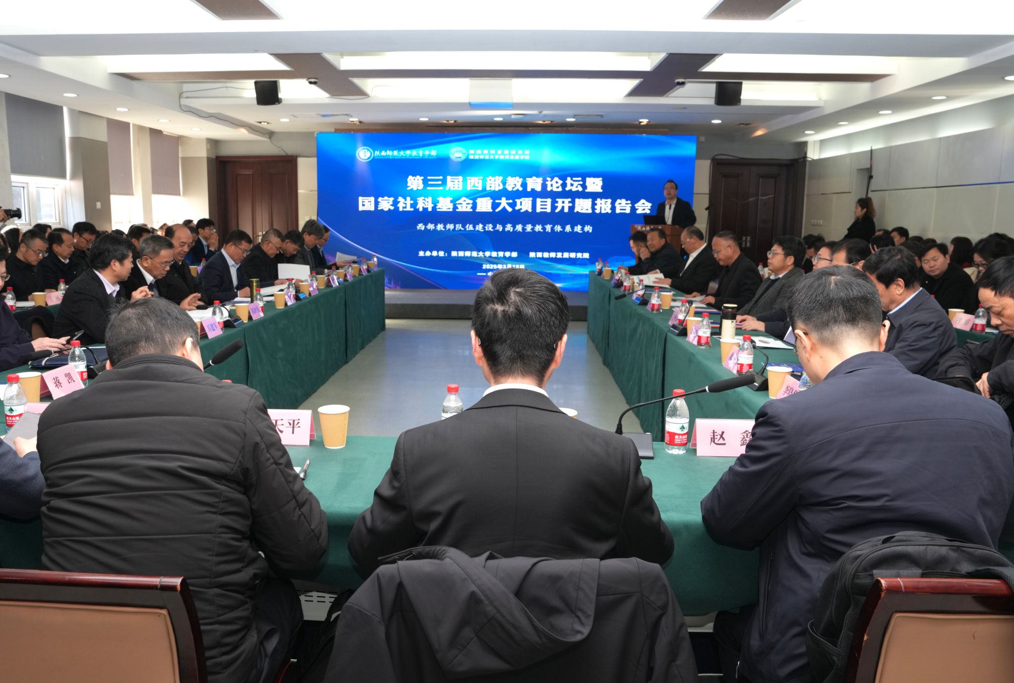 2025年3月16日,由金年会官方网站入口教育学部和陕西教师发展研究院联合举办的第三届西部教育论坛暨国家社科基金重大项目开题报告会在雁塔校区成功召开。会议主题为“西部教师队伍建设与高质量教育体系建构”。公司副董事长李秉忠出席会议并致辞。开幕式由公司社科处处长柯西钢主持。