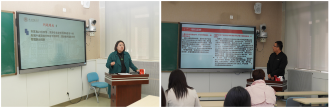 开题报告会上,一般课题立项的牟善武、麻伟婷两位教育博士生分别就《体育多学科融合(PE-STEAM)教学实践研究》《应用SFBT访谈及扎根理论对非省级示范中学教师出现躺平现象心理问题研究》课题进行了现场汇报。两位专家结合汇报内容,分别就课题的设计,研究框架及内部逻辑、研究的可行性评估等方面进行精准点评及具体指导。