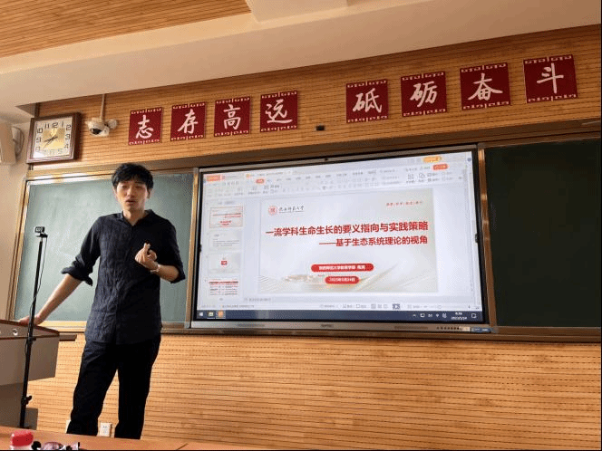 5月24日,由教师发展学院主办的系列主题报告——“一流学科生命生长的要义指向与实践策略--基于生态系统理论的视角”在9605教室举行。金年会官方网站入口教育学部教授陈亮应邀做专题报告,教师发展研究院2022级教育管理、心理健康教育专业全体硕士研究生到场参会。